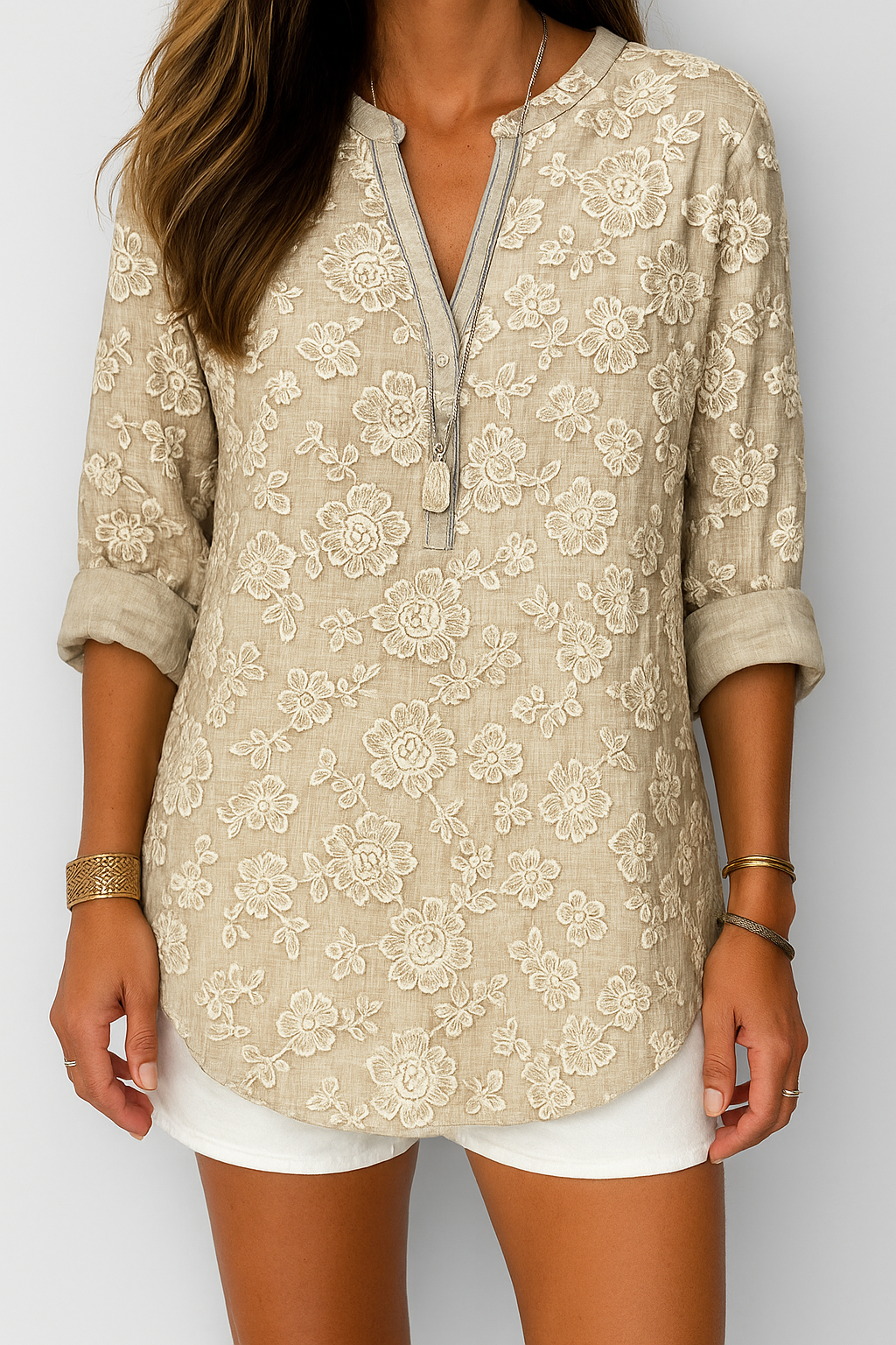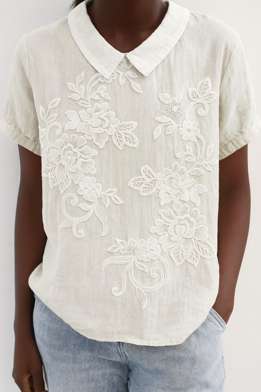 Iveta – Krémová lněná halenka s ozdobným límečkem