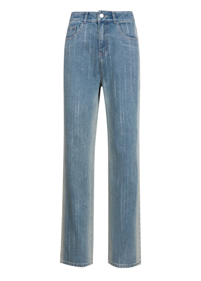 Karolina – Modré džíny s perlovými detaily a širokým střihem
