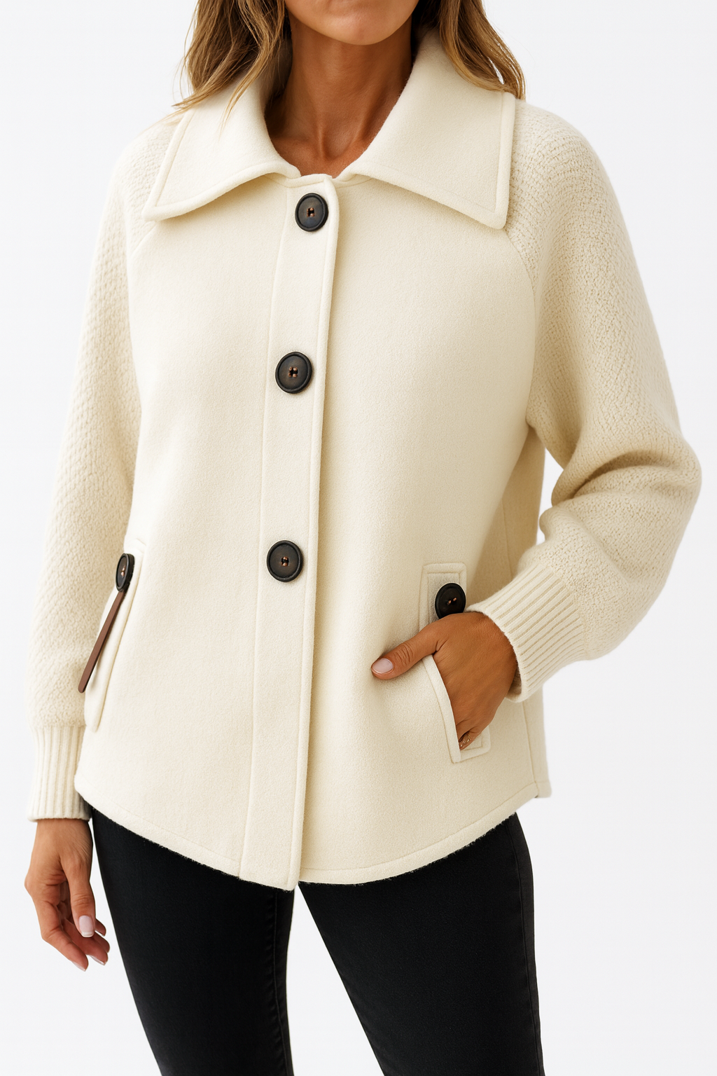 Izabela – Krémový kabátek s kontrastními detaily a velkými knoflíky
