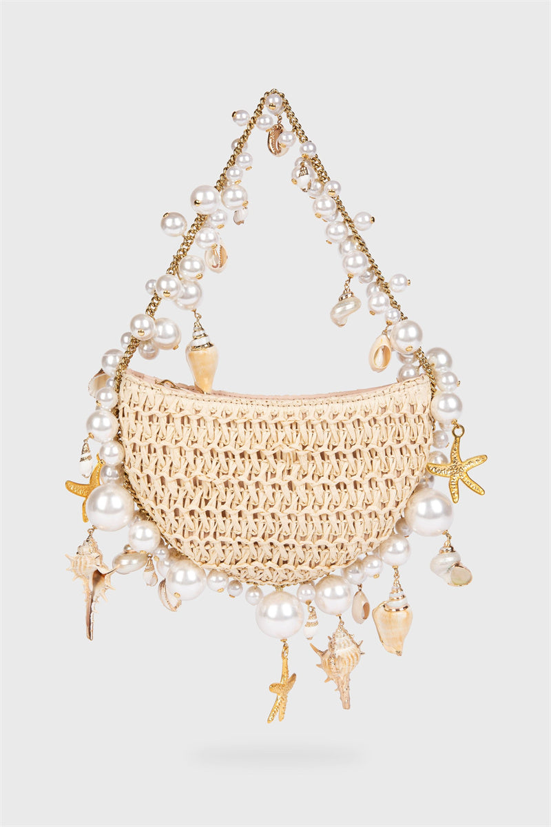 Klara – Pletená kabelka s mušličkovými ozdobami
