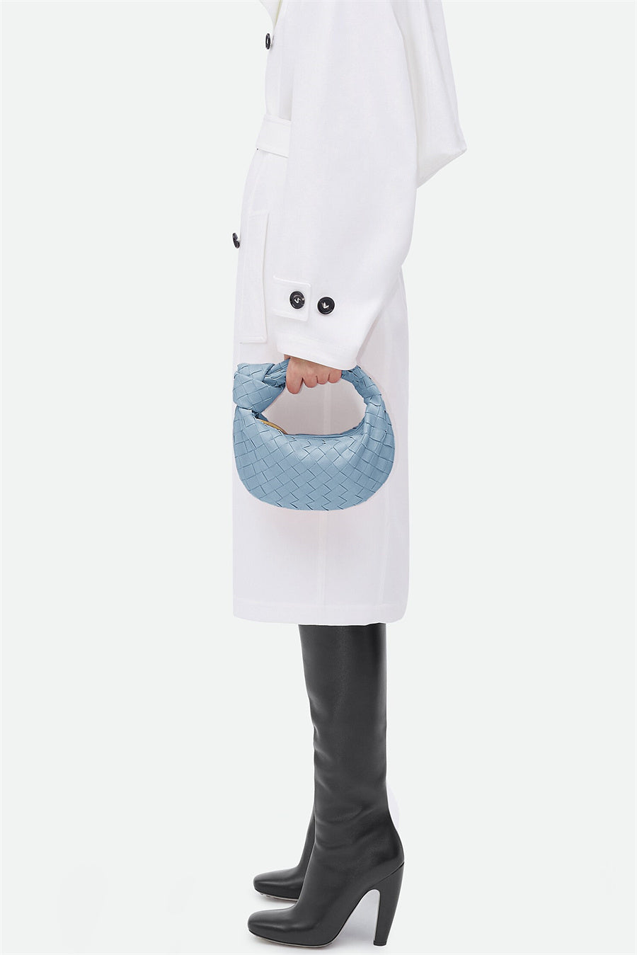 Karolina – Světle modrá pletená kabelka s uzlovaným uchem
