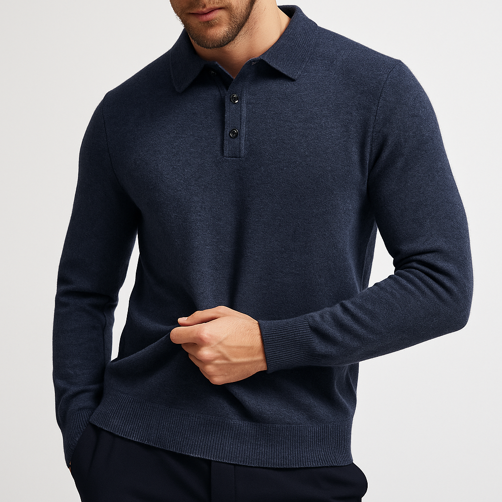 Pavel – Tmavě modré pletené polo s texturovanou látkou
