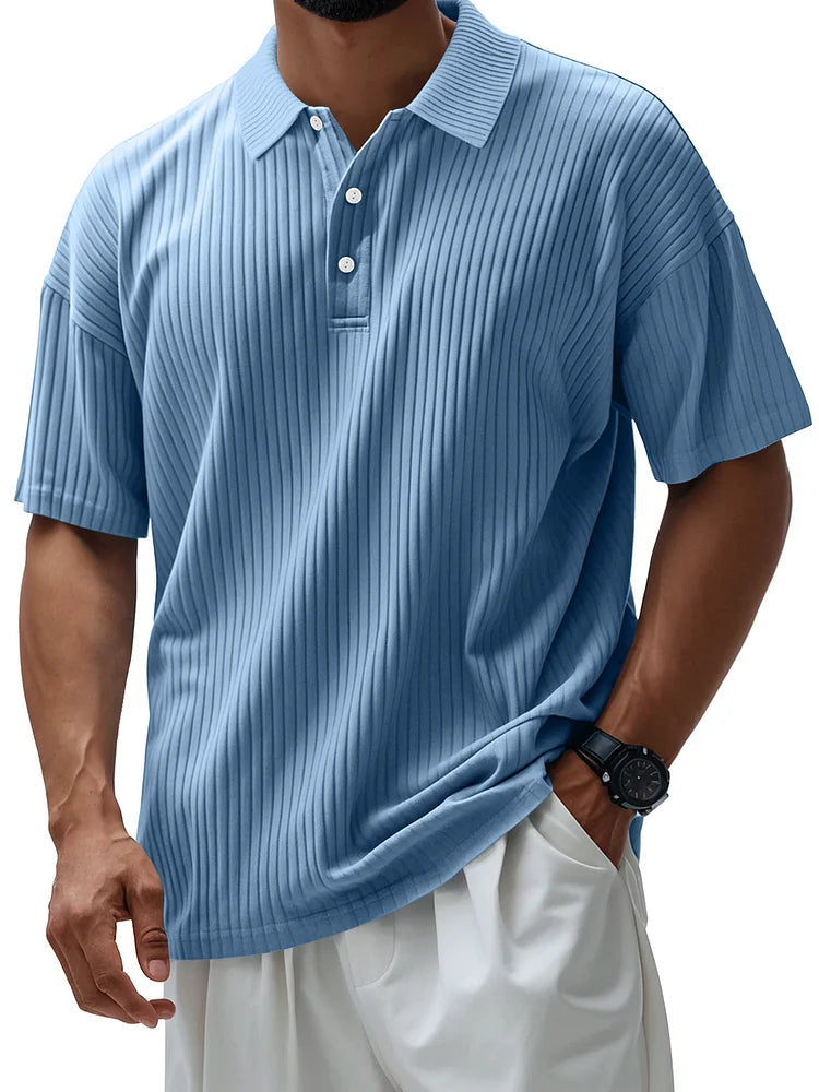 Lukas – Tmavě modré lněné polo s krátkým rukávem