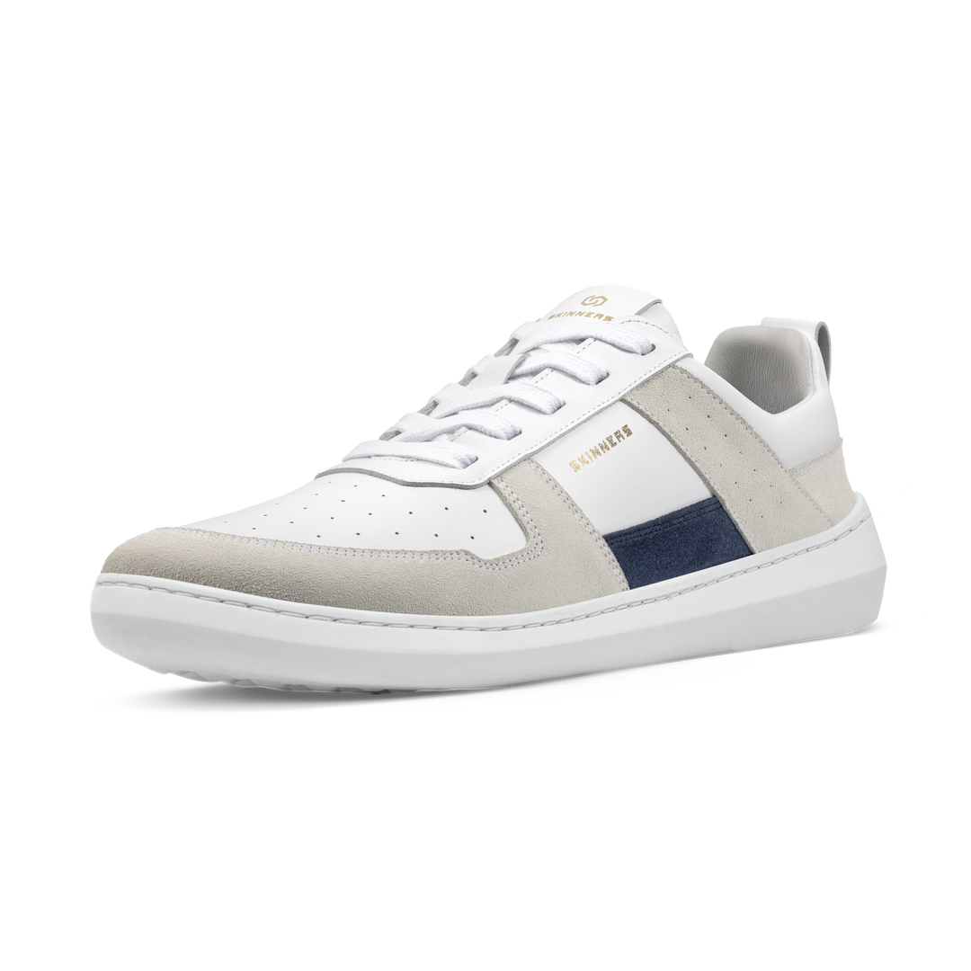 Lukáš – Bílé kožené tenisky s modrým pruhem a šedými detaily